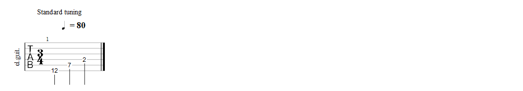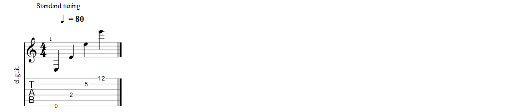 Hier is nogmaals het eerste voorbeeld van deze les, maar dan in tablatuur: